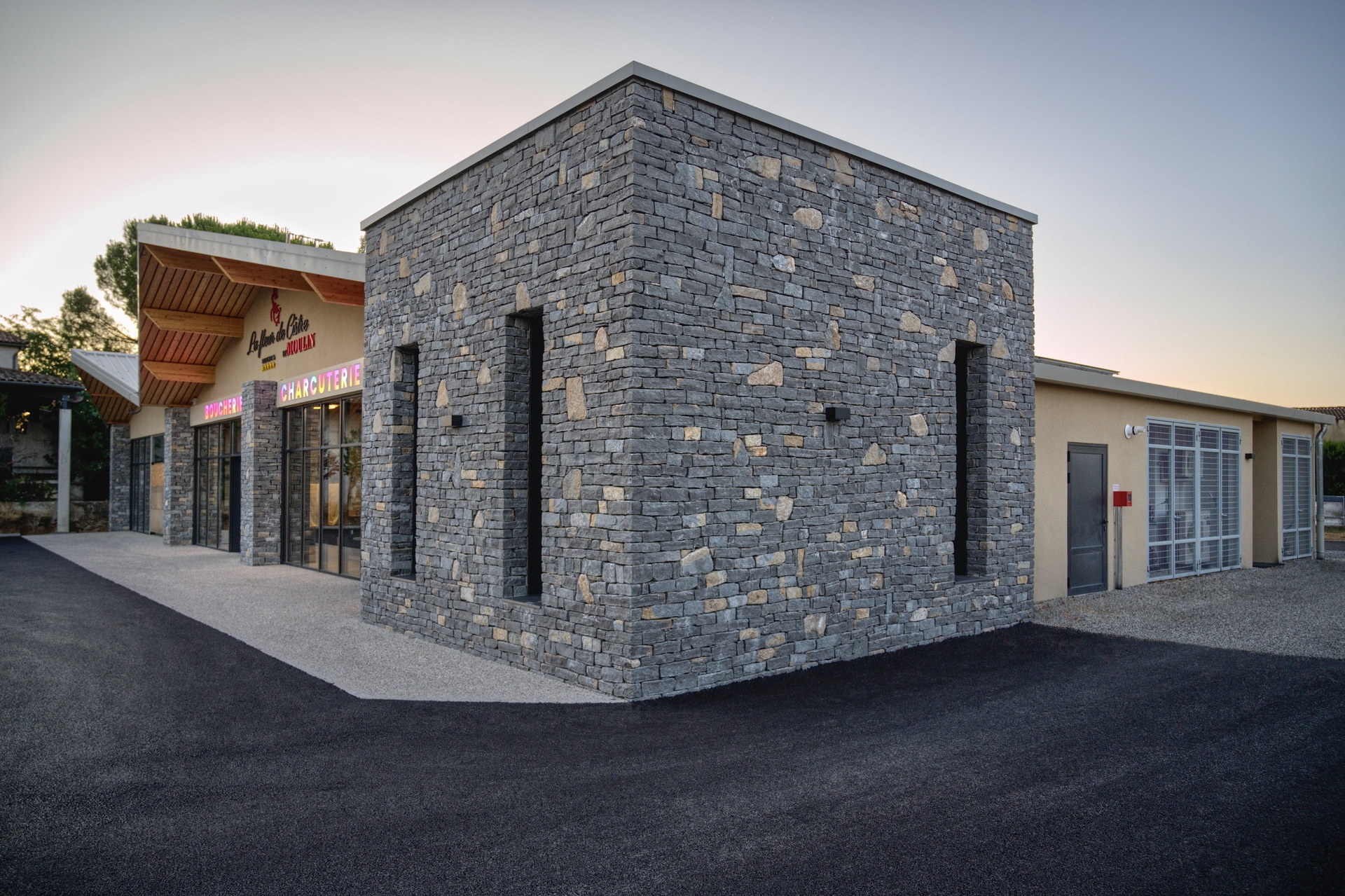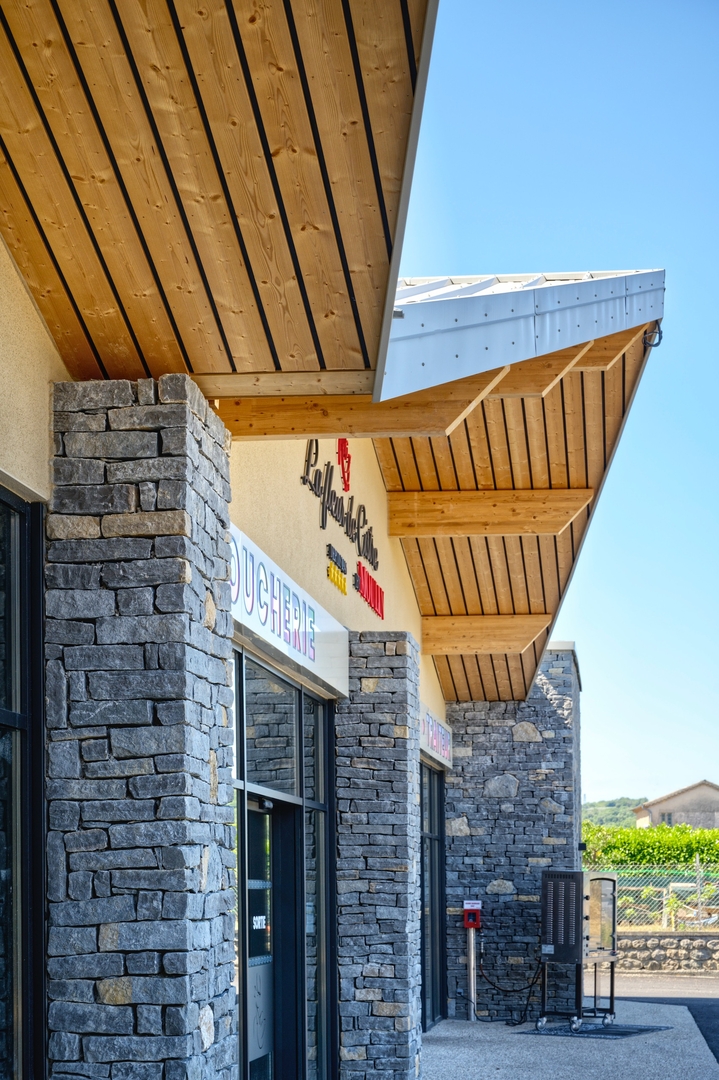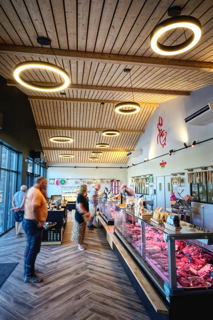 Le programme comprend un espace de vente, un laboratoire de préparation et de transformation de produits (boucherie-charcuterie) et un local à louer.